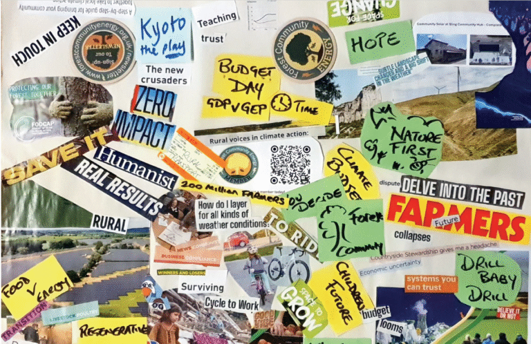 The workshop took place as part of a one-day event on community engagement for Net Zero governance organised by CCRI, the British Academy and local government partners. It gave participants the chance to reflect across scales of governance, from national governance frameworks to the lived realities of rural climate action in Gloucestershire.